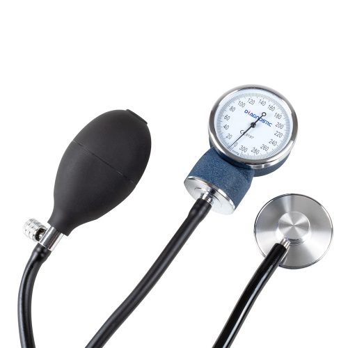 • Ciśnieniomierz zegarowy ze stetoskopem do pomiaru ciśnienia krwi na ramieniu.