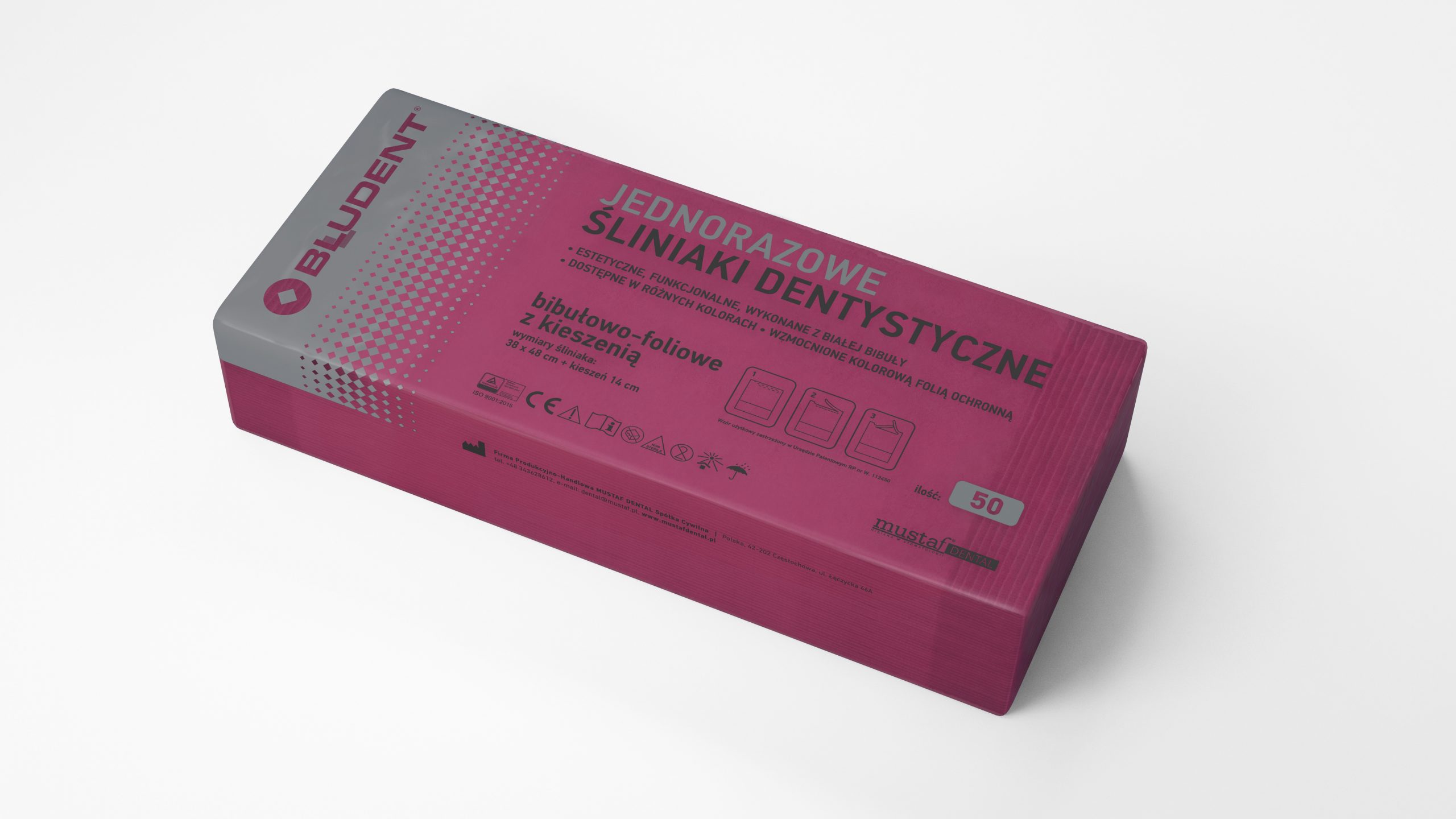Śliniaki dentystyczne z kieszenią bordowe 50szt Mustaf