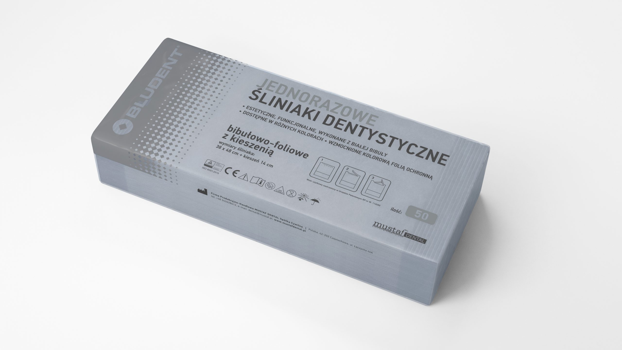 Śliniaki dentystyczne z kieszenią szare 50szt Mustaf