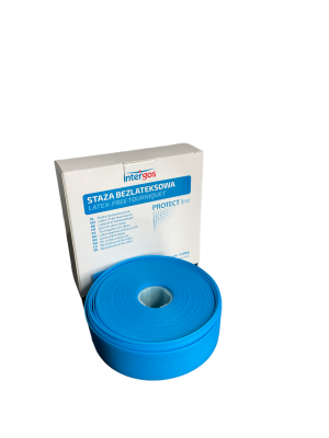Staza w kolorze niebieskim to medyczna opaska uciskowa wielokrotnego użytku, stosowana przede wszystkim podczas pobierania krwi, zakładania wkłuć dożylnych, a także w sytuacjach ratunkowych, gdzie konieczne jest szybkie ograniczenie przepływu krwi.